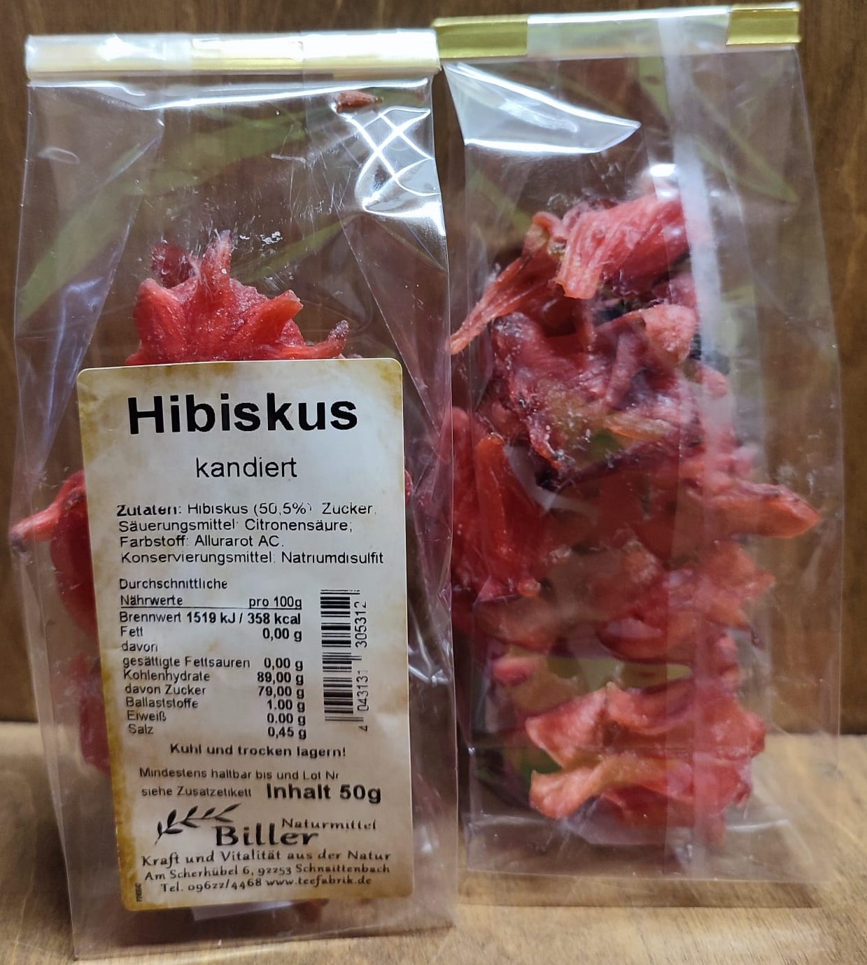 Zutaten: Hibiskus 50,5%, Zucker, Säuerungsmittel: Citronensäure, Farbstoff: Allurarot